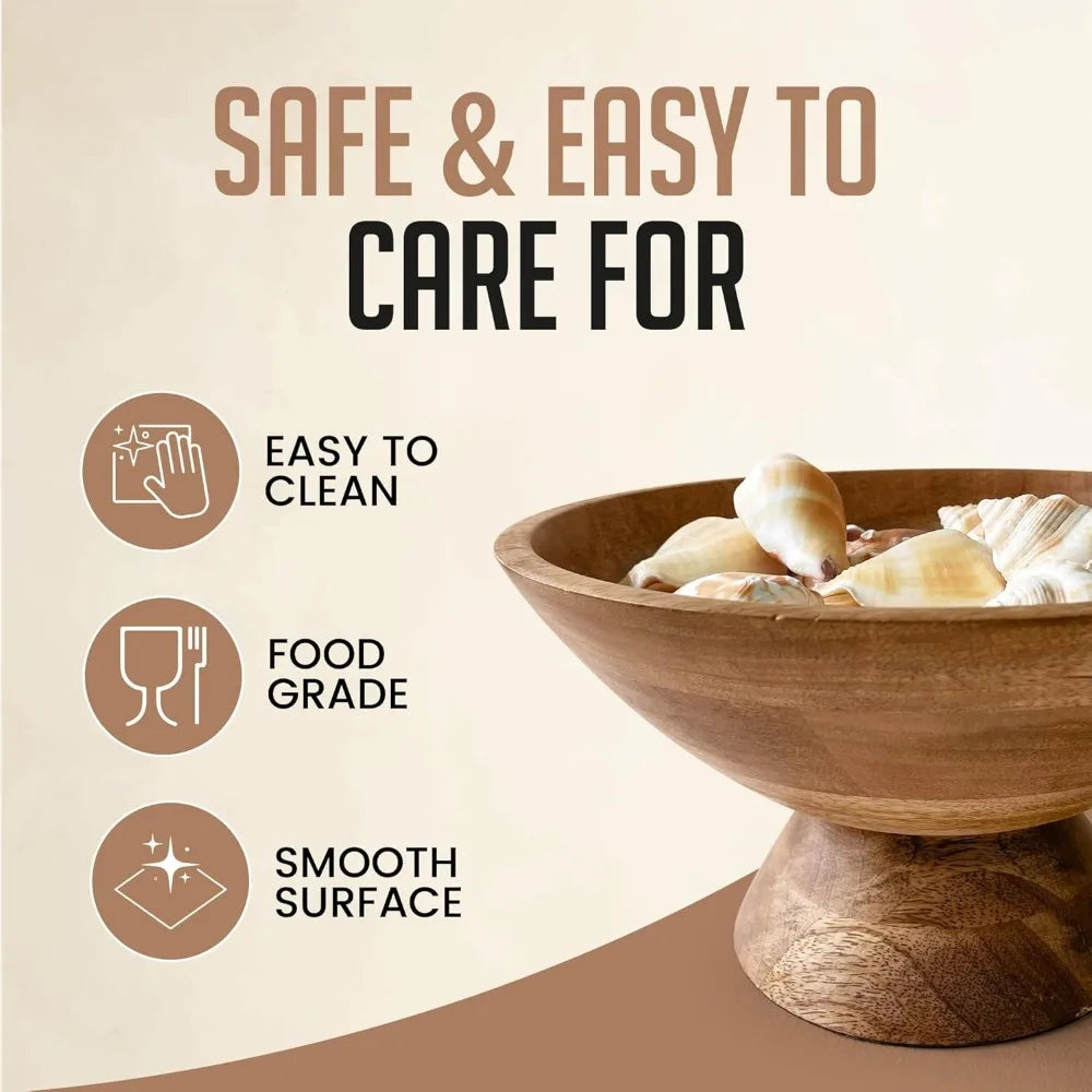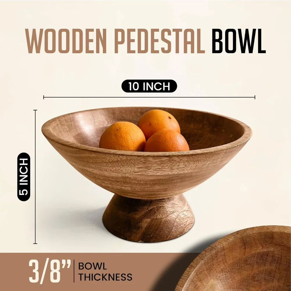 10 Inch Brown Pedestal Bowl - Wooden Fruit, Candy Holder