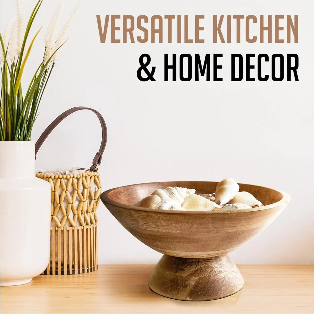 Enhance your home decor with this versatile 10-inch brown pedestal bowl, designed to blend functionality with modern aesthetics. Crafted from sustainable mango wood and finished in a matte brown hue, it offers both durability and style. Key Features: - Ideal Dimensions: Measuring 10 inches wide and 5 inches tall, this bowl provides the perfect balance for holding fresh fruit, snacks, or decorative items without overwhelming your space. - Multi-Purpose Use: Serve as a fruit bowl on kitchen counters, a key holder in entryways, or a candy dish during gatherings. Its sculptural profile makes it suitable as a centerpiece or accent piece in any room. - Versatile Display Options: Perfect for displaying popcorn, nuts, crackers, or seasonal decor like pine cones and glass beads. Pair with wicker or wooden balls for added visual appeal. - Seasonal Styling: Adaptable for all seasons—use as a Halloween candy bowl, Christmas potpourri holder, or summer seashell display. It can also support plants or candles as a decorative pedestal. - Easy Maintenance: Wipe clean with a damp cloth and mild soap. Soft felt bottoms protect furniture surfaces from scratches. Benefits: - Saves Space: The pedestal design elevates contents while minimizing countertop footprint. - Enhances Decor: Adds a contemporary touch to kitchens, dining tables, and living areas with its warm brown finish. - Durable Construction: Made from eco-friendly materials for long-lasting use in daily settings. Ideal For: - Homeowners seeking stylish yet practical storage solutions. - Hosts looking for elegant serving dishes for parties and holidays. - Interior decor enthusiasts wanting to accentuate modern or rustic themes. Transform your home accessories with this functional wooden bowl that combines utility with artistic design.