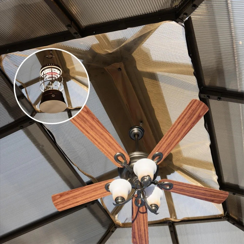 - Double Roof Protection: The 10'x12' gazebo features a 6mm UV-resistant polycarbonate double roof with a unique ventilation design. This roof provides full rain and sun protection while maintaining airflow through the hollow core. Perfect for year-round outdoor enjoyment, preventing moisture build-up and condensation during the rainy season.
