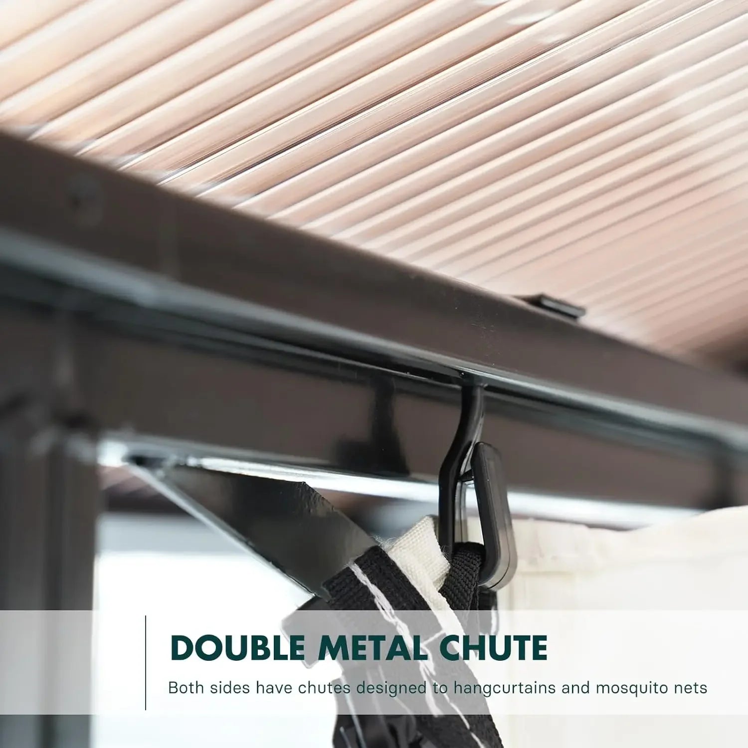 - DOUBLE-LAYERED CURTAINS: Our patio gazebo have double track system allows for double-layered curtains. Protect against mosquitos with mosquito netting or use curtains to block harmful UV radiation. The netting zipper at four sides offers your family and children cozy.