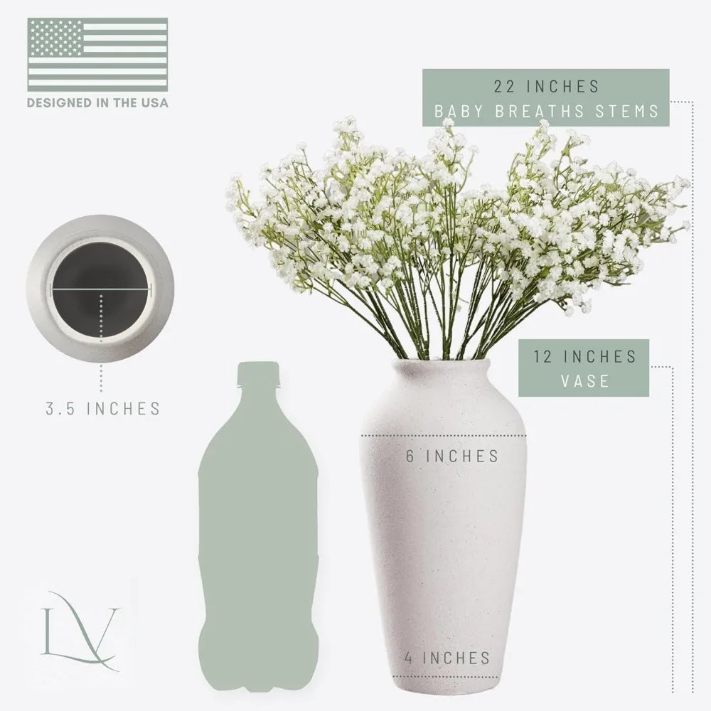 - SOPHISTICATION: Laurel & Vine Decor artificial baby's breath in raw finished jug vase, adds a transformative sophistication to your space. Inspired by rustic bridal charm, they bind vintage with modern creating a sense of calm and elegance that is sure to impress. Its Neutral tones make it a go to for any season. They also make for delightful event centerpiece.