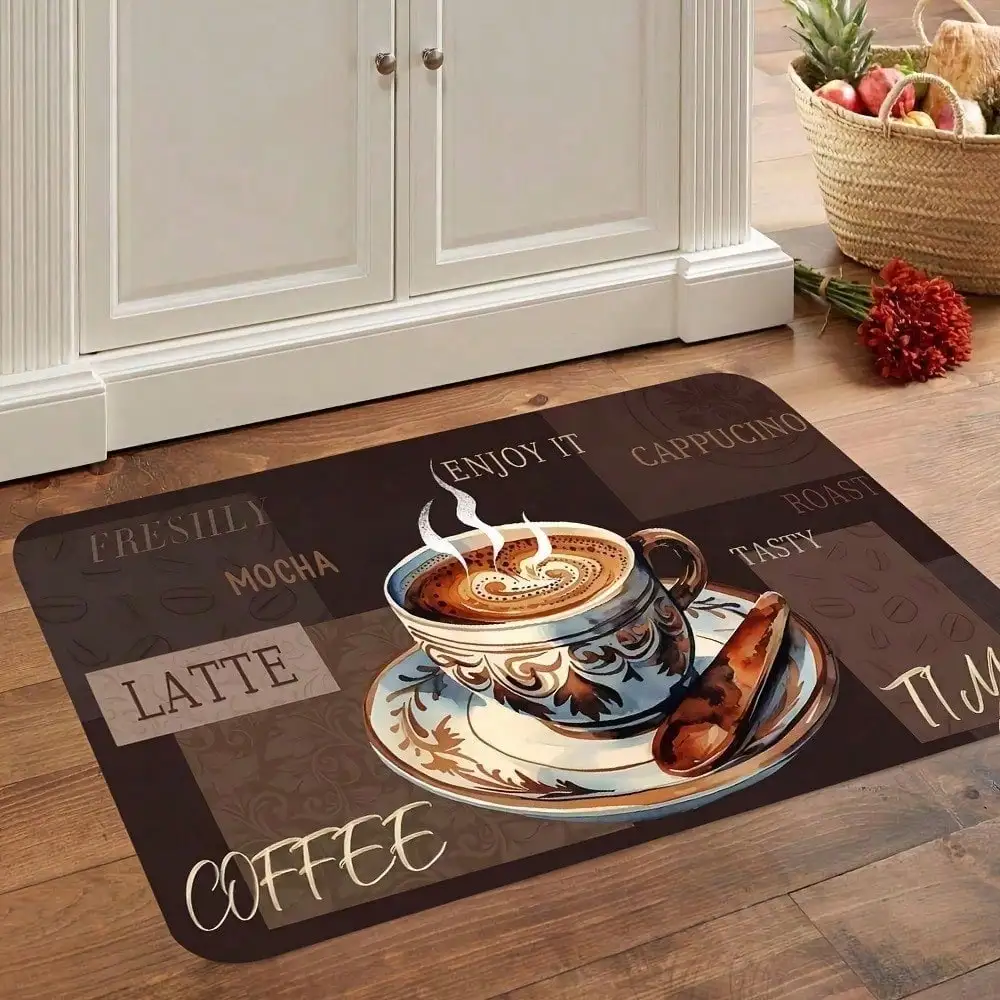 1pc Coffee Kitchen Mat Coffee Bar Rug Non-Slip Absorbent