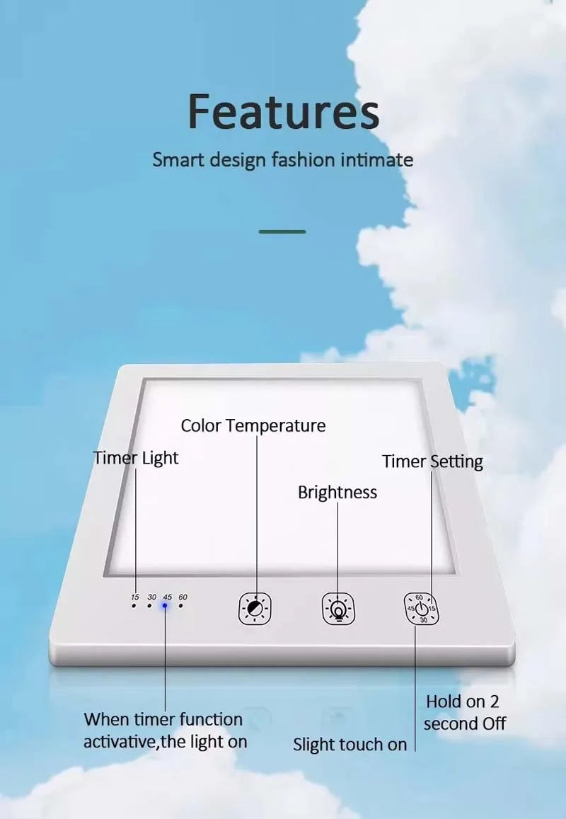 5V 2A 10000Lux SAD Phototherapy Lamp LED Portable Smart Therapy Light Touch Control Stepless Dimming Daylight Home Office