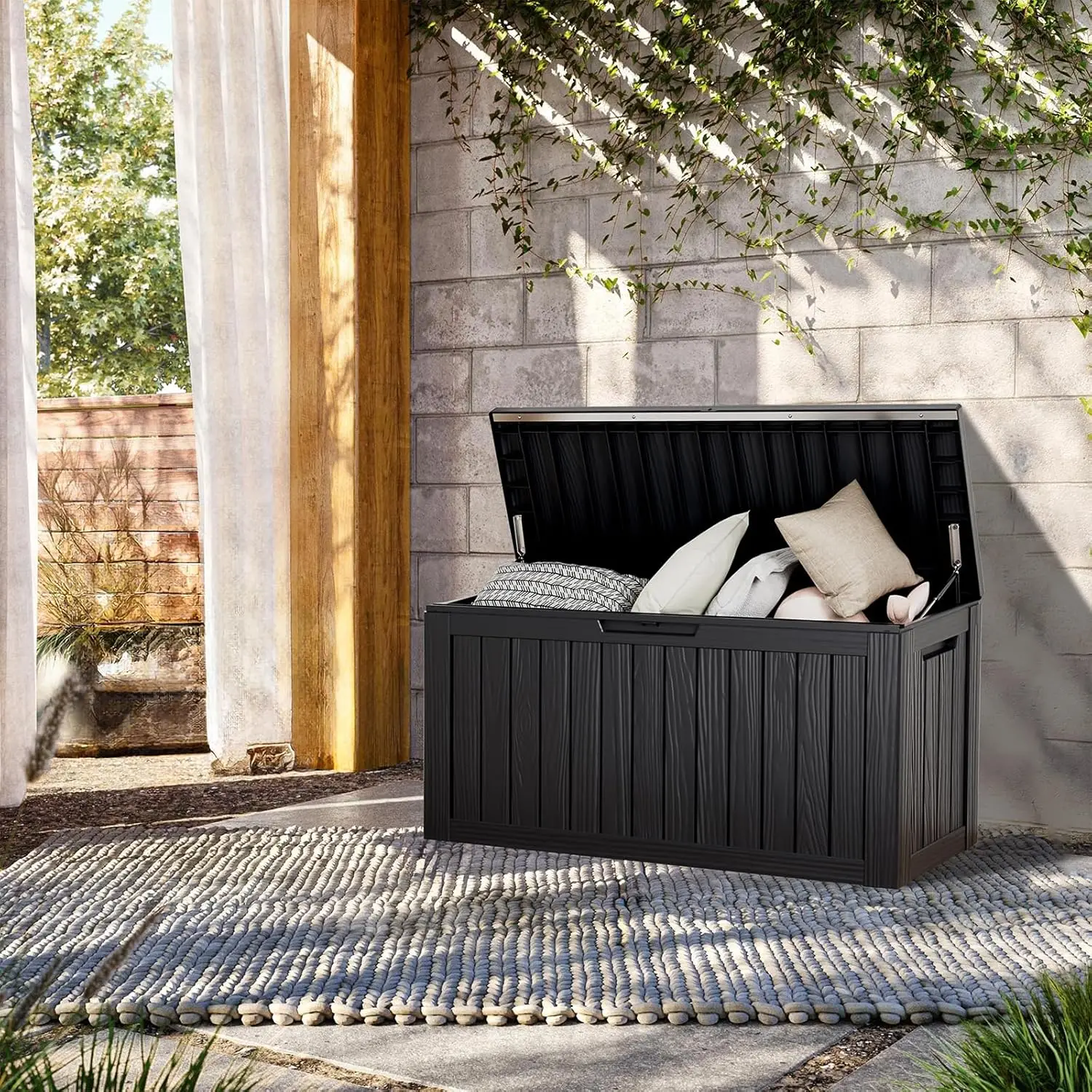 - Wide Range of Use: With a capacity of 80 gallons, this storage box can also be used as a patio seat, storage bench or footstool, whether it's family party supplies, camping equipment, gardening tools.