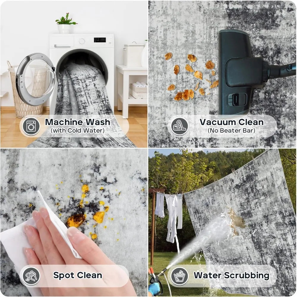 9x12 Feet Modern Washable Area Rugs: Abstract Design