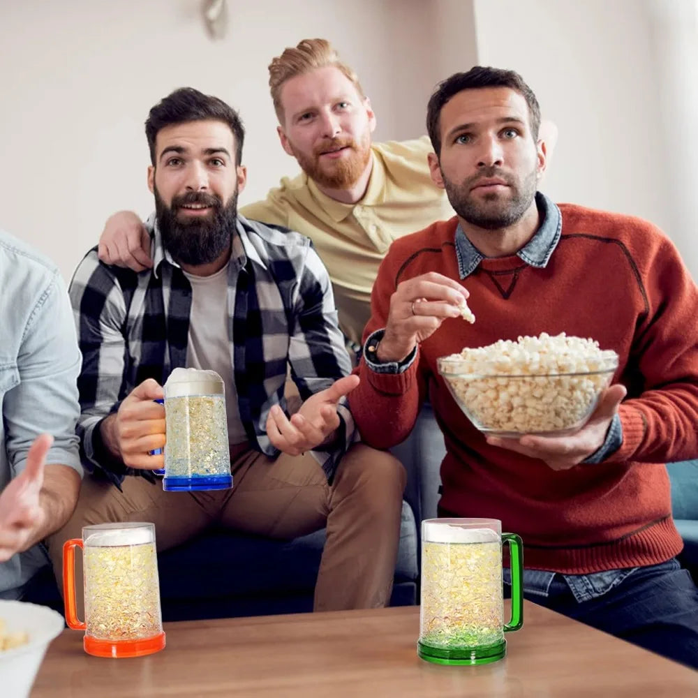 Freezer Beer Mugs, 4 Pack Double Wall Gel Frosty Freezer Ice Mugs