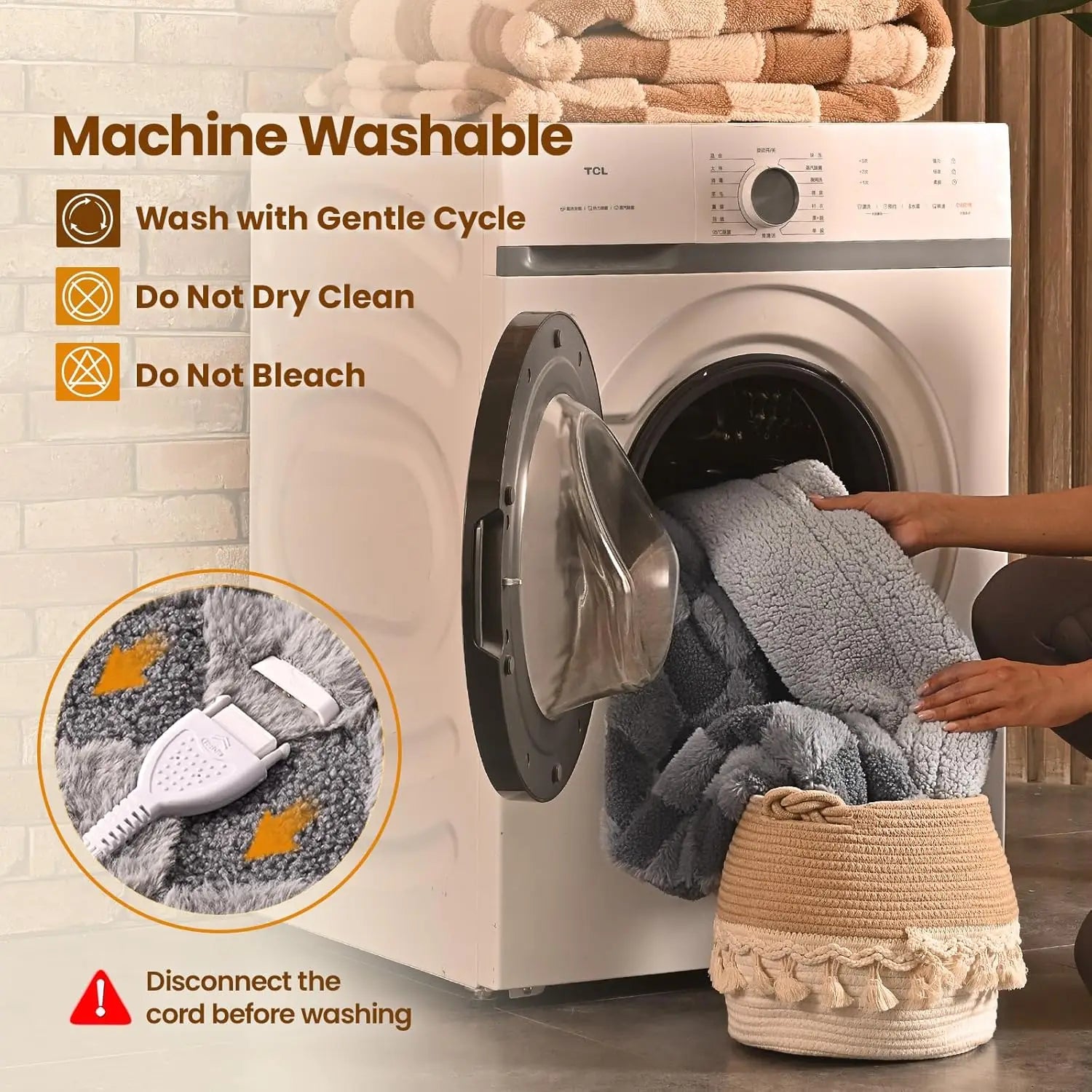 - [Easy Care and Elegant Gift Packaging] Keeping your heated blanket fresh and clean is a breeze, as it’s machine washable for your convenience. Plus, it arrives beautifully packaged in a thoughtfully designed gift box, making it a perfect present for anyone who feels the cold.