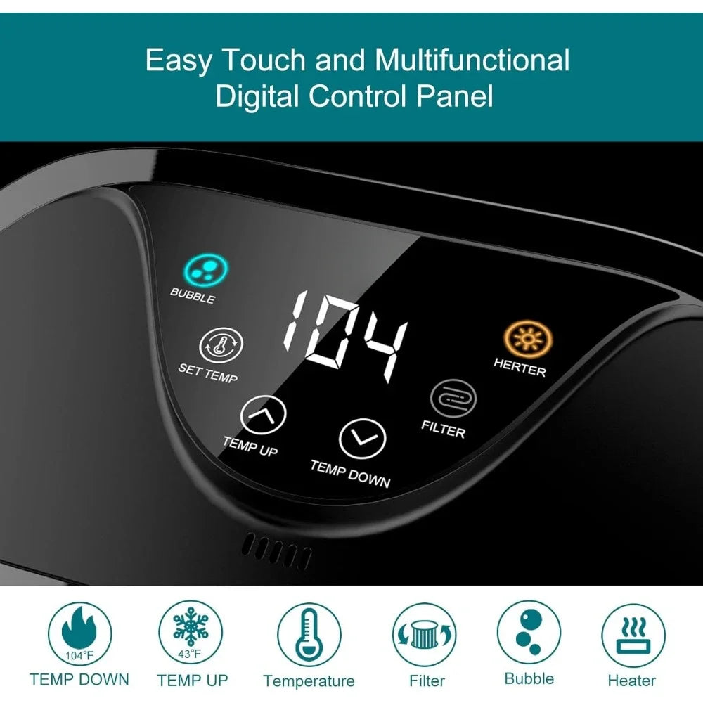 - TOUCHSCREEN CONTROL PANEL: Using a touch digital control panel, easy to inflate & deflate within minutes to click the "Bubble" button, can also adjust the heating system and circulation automatically. Relieve fatigue at the press of a button while the constant water temperature delivers soothing heat to the entire body