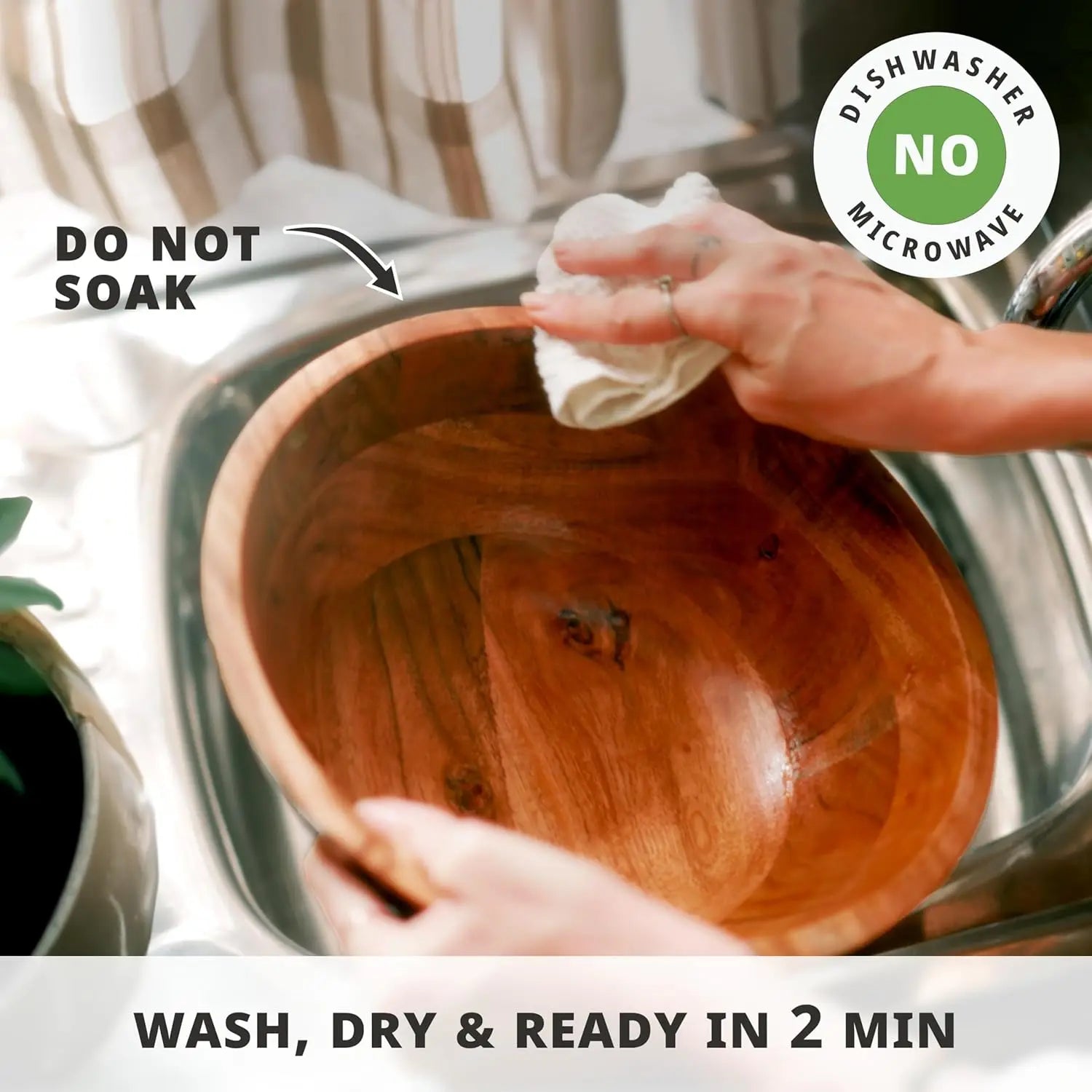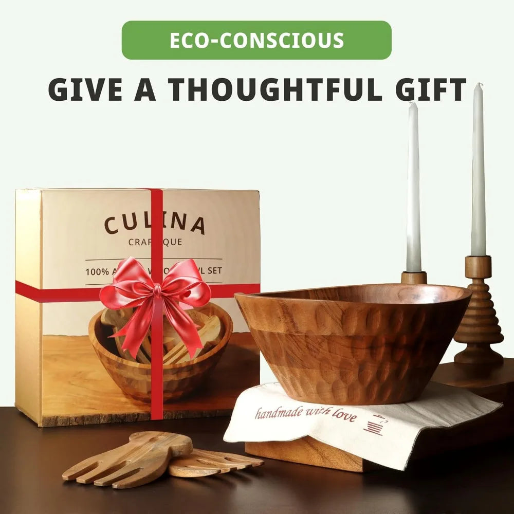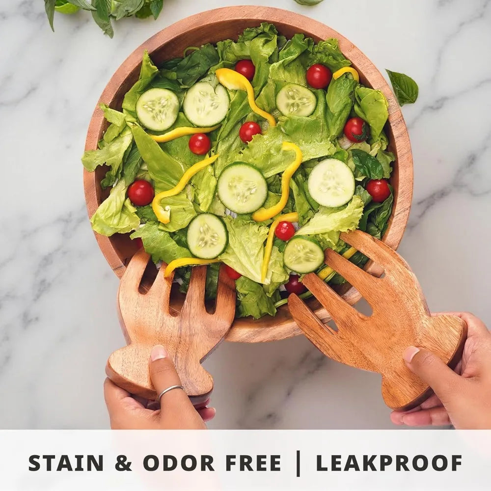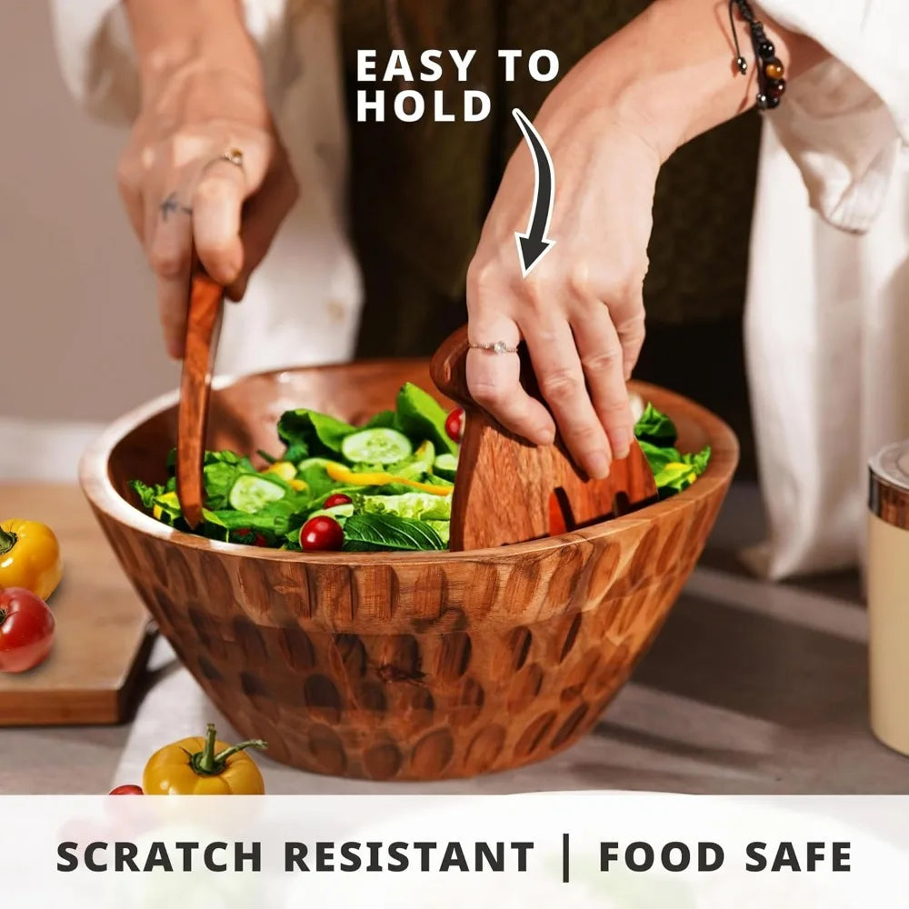 Large Acacia Wood Salad Bowl Set - Utensils and Placemat