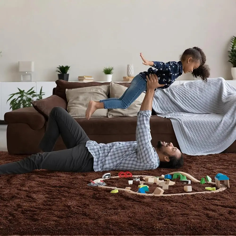Large Area Rugs 9X12 Living Room, Brown, Soft Fluffy Plush