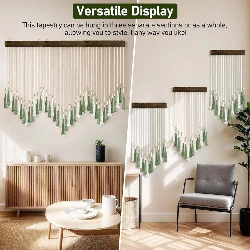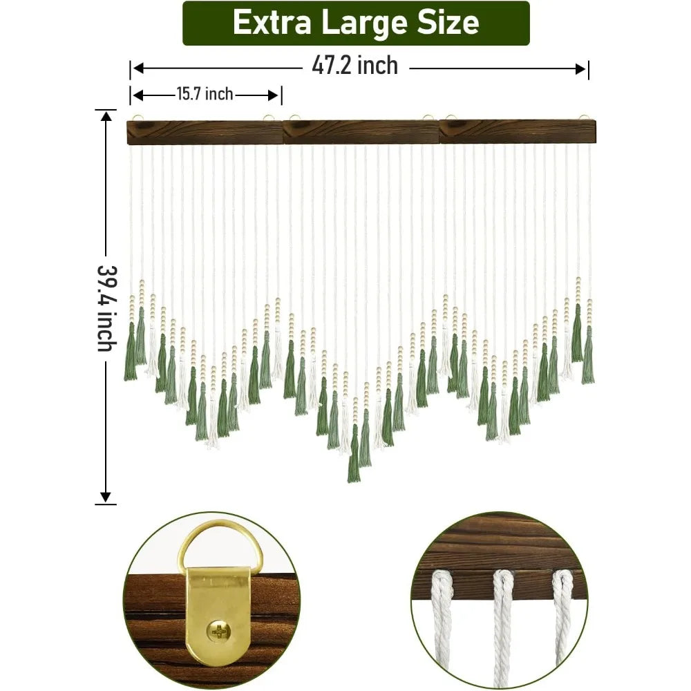 - Unique Design: This macrame wall hanging set (47" L x 39" H) includes three individual panels, each measuring 15.7" in length. Arrange them together for a unified look or separately to adapt to different spaces, providing versatile decor options for walls of various sizes.