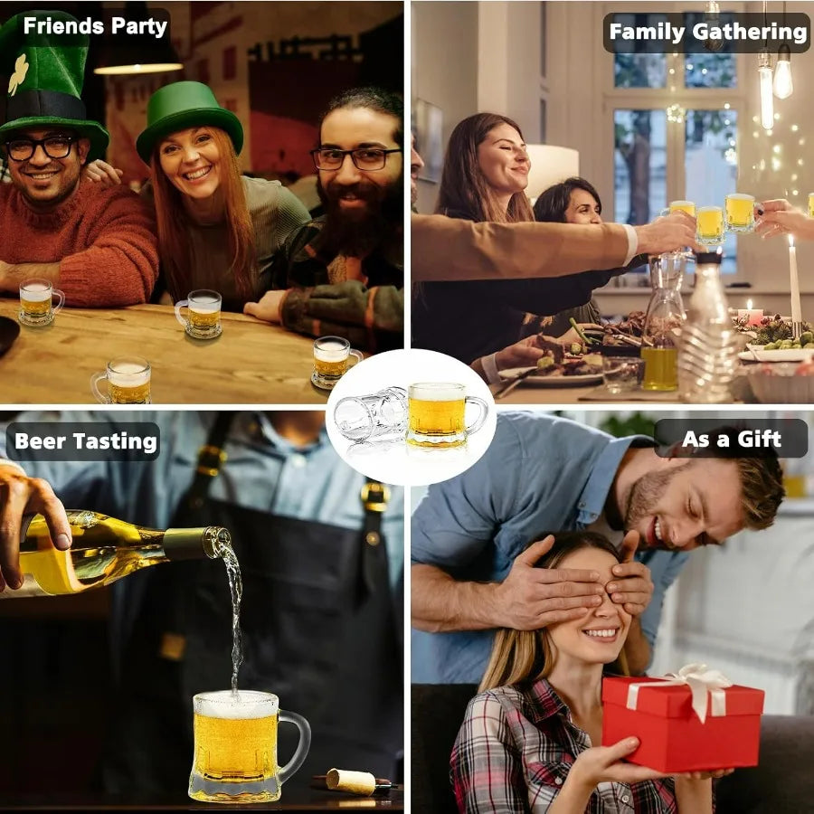 Fits Most Scenes: Beer stein with handles perfect for whiskey, vodka, tequila, cordials, espresso, desserts and liqueur shots. Ideal for home, bar, hotel, restaurant, resort, and nightclub use. The perfect mini beer shot glasses set will create great memories