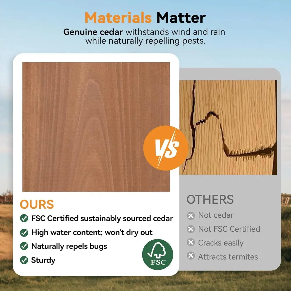 - [Premium FSC-Certified Cedar Wood Gazebo] Crafted with ethically sourced premium cedar wood (FSC Certified), this all-weather hardtop gazebo features a rust-resistant galvanized steel frame with powder-coated brackets. Sustainably harvested cedar wood ensures natural decay resistance and long-lasting durability for permanent outdoor structures.