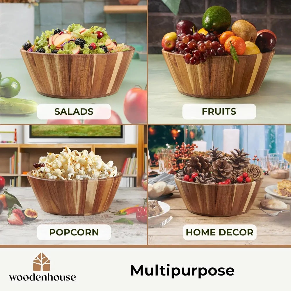 - VERSATILE USE LARGE SERVING BOWL SET: Designed for a variety of uses, this large wooden bowl is perfect for serving salads, fruits, popcorn, or even as a unique home decor piece. Use it as part of a salad bowl set to bring natural beauty to any occasion.